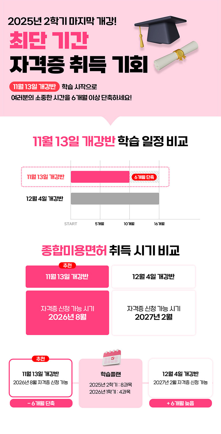 4. 수강 과목 중 한 과목이라도 미수료 시, 학위취득 및 자격증 발급 일정이 변동됩니다.